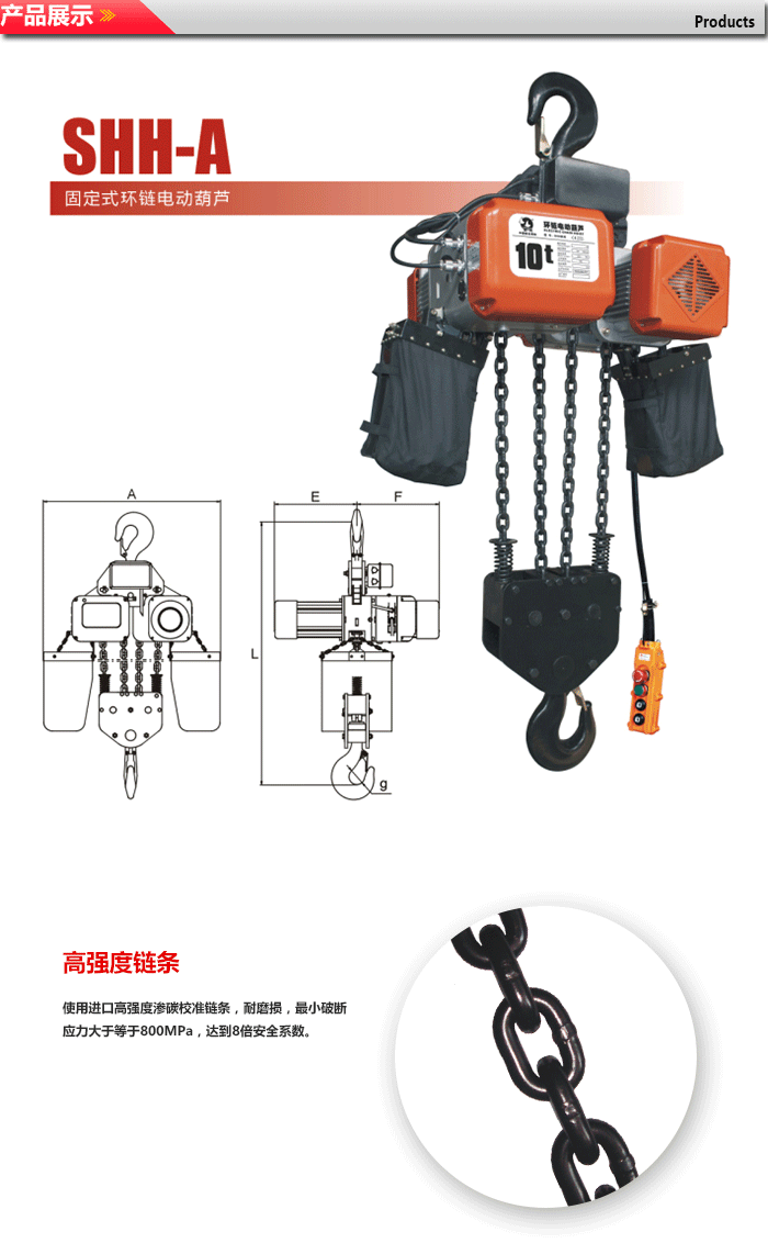 8.起重鏈條是特殊合金鋼制作并經(jīng)過熱處理,不能私自進行焊接或改裝。